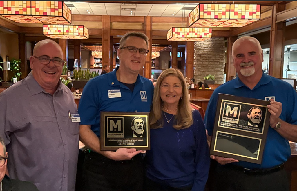 Enrique Caravella, BOTY Glenn Smith(with individual award), Hilda Geer and Ernie del la Fe (with new plaque that will hold names of next 20 BOTYs)